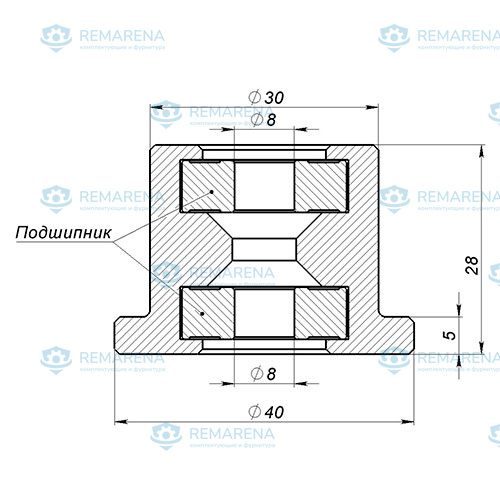 Внутри ролика установлено 2 подшипника с внутренним диаметром 8 мм